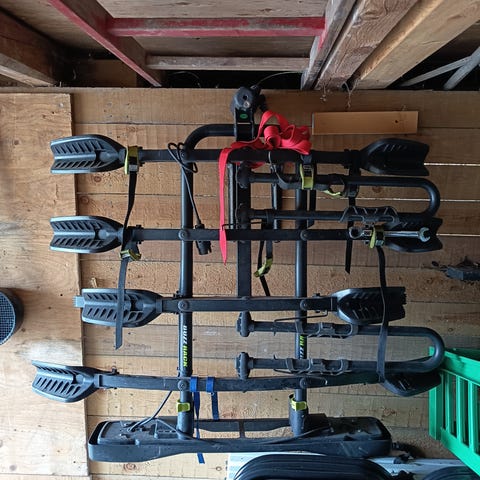 Buzzrack solidt cykelstativ til 4 cykler i god stand, inkl. beslag og stropper.