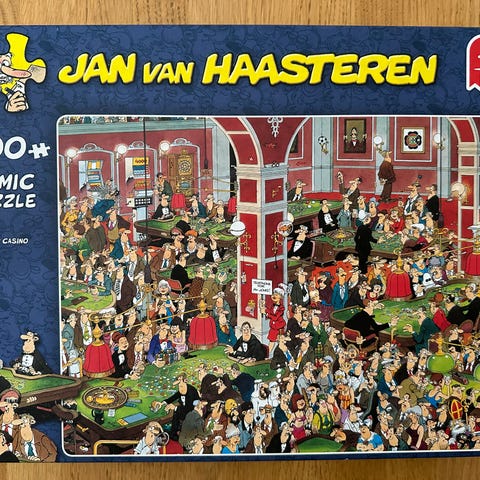 bl.a. Jan van Haasteren, Falcon, Gibsons og Ravensburger med 500 og 1000 brikker. Motiverne er bl.a. ishockey, bingo, skole og bymiljø med mange sjove detaljer.