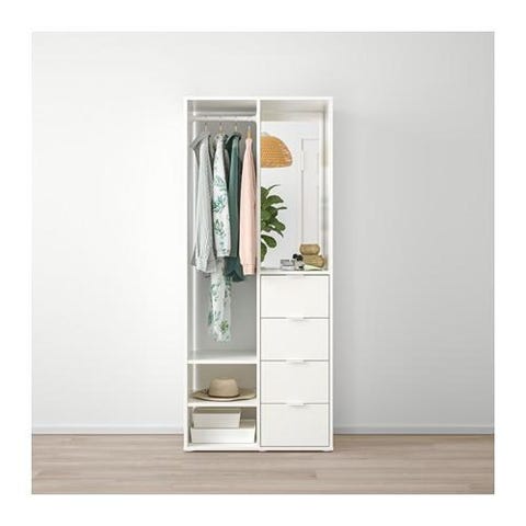 IKEA garderobeskab med hvide låger og flere små og store skuffer på fronten. God opbevaringsløsning med både skab og skuffer i ét møbel. Bredde: