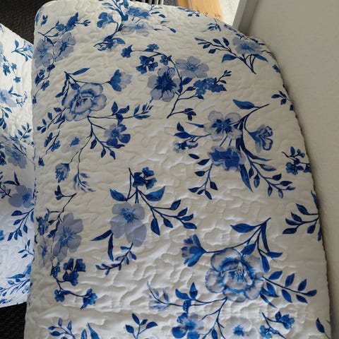 Det smukke sengetæppe med rokokoagtige blomstermotiver er i meget kraftig kvalitet, så det vil ligge flot på sengen.