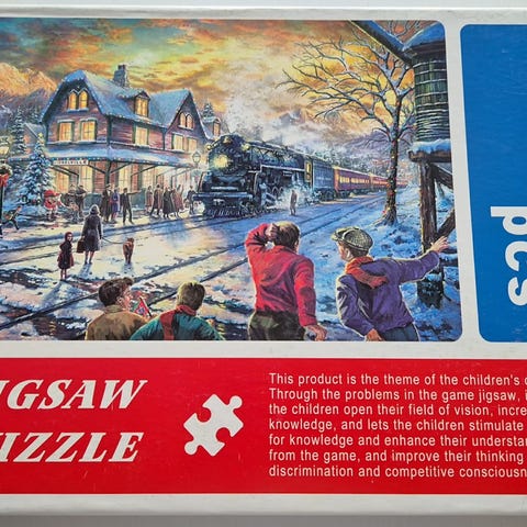 Tre puslespil med 1500 brikker hver, ét med et sjovt Wimmelbild-motiv med tog og byliv og ét Castorland “Kittens Play Time” med masser af kattekillinger. Alle er lagt på billederne, så du kan se motiverne tydeligt med mange små detaljer at samle.