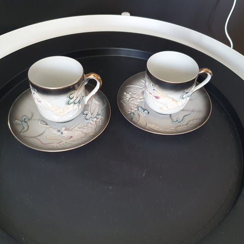 Kopperne måler ca. 8,5 cm i diameter og underkopperne måler ca. 15,5 cm i diameter.