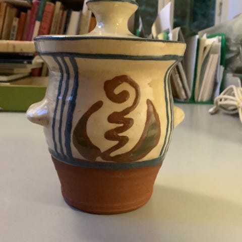 Sælger dette smukke sæt bestående af to originale marmeladekrukker (eller sukkerskåle) fra den anerkendte fabrik Zakłady Ceramiczne "BOLESŁAWIEC" i Polen.