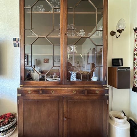 Mahonie kommode med 3 skuffer og ovalt Mahonie spejl