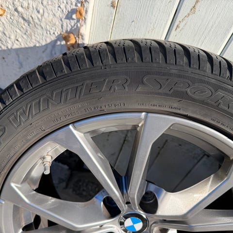Antracitgrå letmetalfælge med Continental vinterdæk TS 870. Masser af mønter og aktive ventiler.