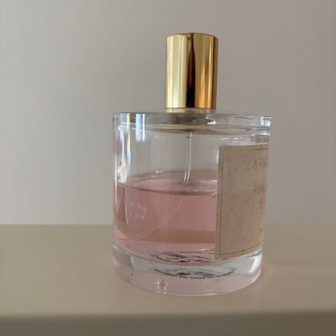 Burberry Her Eau de Parfum i 50 ml flakon med lyserød hætte. Fin, firkantet glasflaske med lyserød duftvæske.