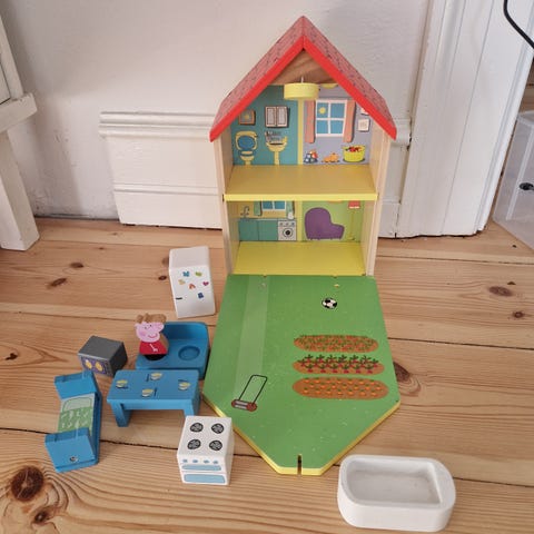 Gurli Gris hospital legesæt med hvid ambulance og rødt tag på hospitalet. Med flere små figurer og detaljeret indretning indenfor til rolleleg.