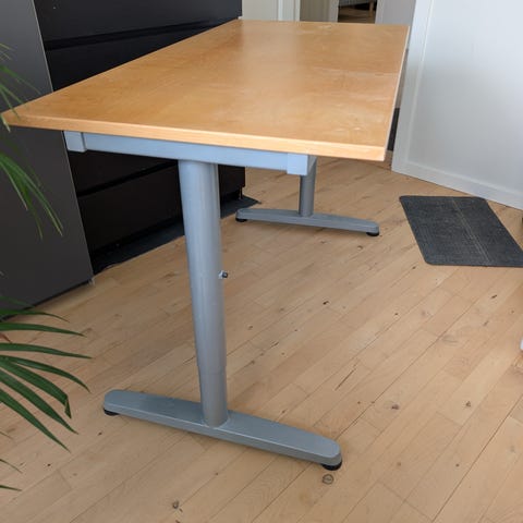 Meget solidt og praktisk bord med elektrisk hæve-/sænkefunktion.