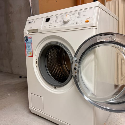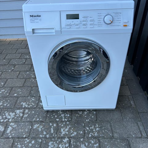 Ældre mine vaskemaskine kan afhentes gratis. Støjer af og til når den centrifugerer. Desværre skal vandslangen repareres/ udskiftes.