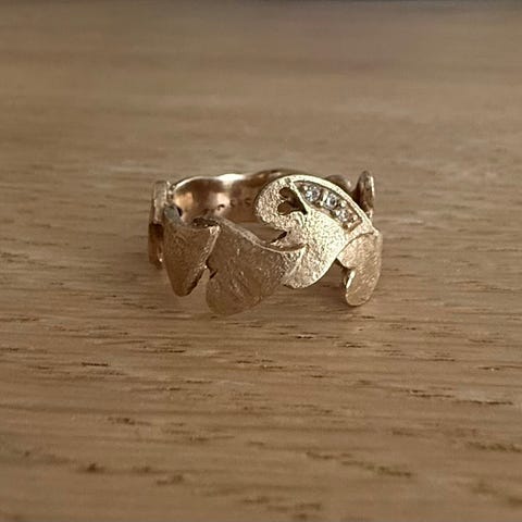 Kun brugt få gange, mest brugt som halskæde i stedet for en ring. Ingen synlige skader eller tegn på slid.