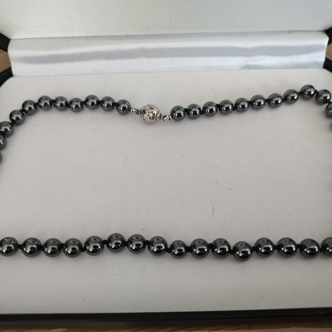Flot, vintage blodstens perlekæde med knuder mellem perlerne