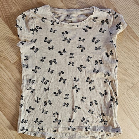 Blå T-shirt fra Mango Kids i bomuld, pige str 122. Kortærmet model med små flæser ved ærmerne og let struktur i stoffet. Sølvtråde i nederste syning for feminin detalje.