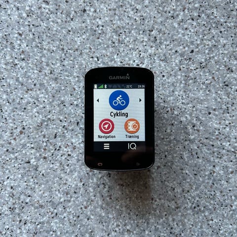 Garmin Edge 1000 cykelcomputer med farveskærm og touchbetjening. Har flere knapper foran og standard Garmin-beslag på bagsiden til montering på styret.