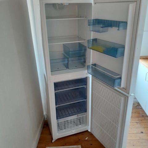Det ikke helt nye dansk producerede køleskab fremstår i usædvanlig velholdt (og ren) stand bortset fra et lille stød mærke på front (se billede) med diverse hylder og bokse helt intakt.
