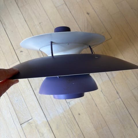Hvid PH pendel loftlampe med blå og lilla detaljer