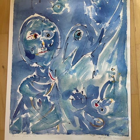 Litografi, Carl-Henning Pedersen, motiv: Ny Dansk Glaskunst, b: 55 h: 86,6