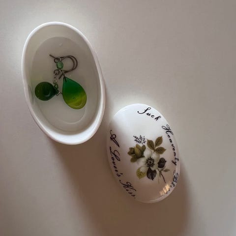 Fint ovalt blomsterdekoreret Bone China porcelænsskrin. Made in England. Vintage fra 1960erne.