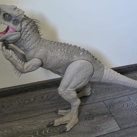 Stor dinosauer ca 91 cm lang. Den kan sluge ting og så er der er låge i maven man kan åbne og så tage tingene ud. Den er fin og fra dyre og røgfrit hjem. Ønsker kun afhentning