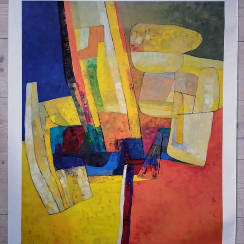 Fremstår i god frisk stand med minimale mærker, dog er der en 3,5 cm flænge i venstre kant, som kan maskeres af passepartout.