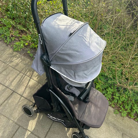 Easyfly rejseKlapvogn fra mærket Beemoo. Den er super nem at slå op og ned, og den er så lille, at du kan have den med oppe i håndbagagen på flyveturen. Derudover også smart at have liggende i bagagerummet i bilen, da den ikke fylder meget. Der medfølger også et regnslag, som passer specifikt til denne klapvogn.