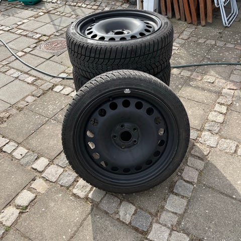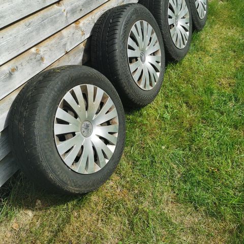 Har kørt 3 sæsoner og ca. 20.000 km. Der er ca. 7 mm mønster tilbage. Der er hjulkapsler i god stand til alle 4 fælge. Let overfladisk rust på fælgene.