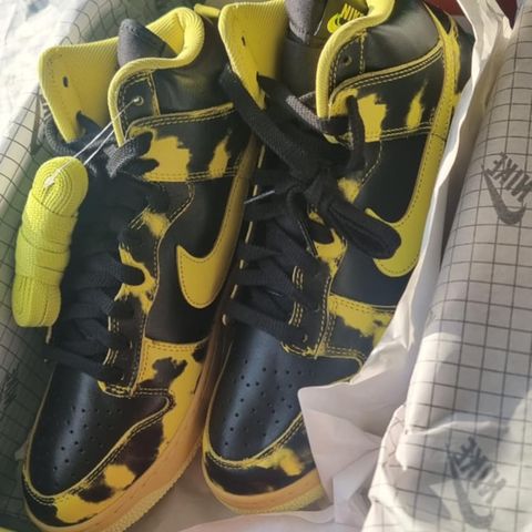 Nike Dunk Low sneakers i str 44 i blå og hvid . Sælges med den klassiske røde Nike æske, se billeder for detaljer.