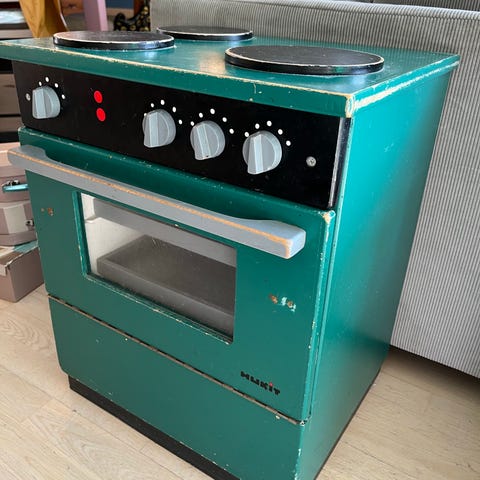 Sødt og meget dekorativt legekøkken til børn med emaljeskål (vasken).
