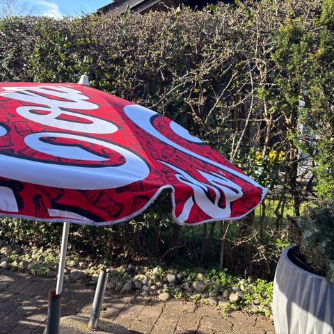 Balcony Living Parilla parasol på 160 cm i lys cremefarve. Har træstang, knækfunktion og kan spændes sammen med snor.