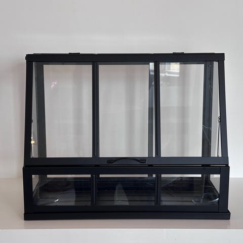 Lille drivhus/minidrivhus hvor lågerne i toppen kan åbnes. God til krydderurter eller små planter på terrasse eller altan.