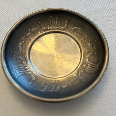 Tallerkenen er i god stand. Men man kan godt se at den har været I brug. Der er flotte figurer på kanten