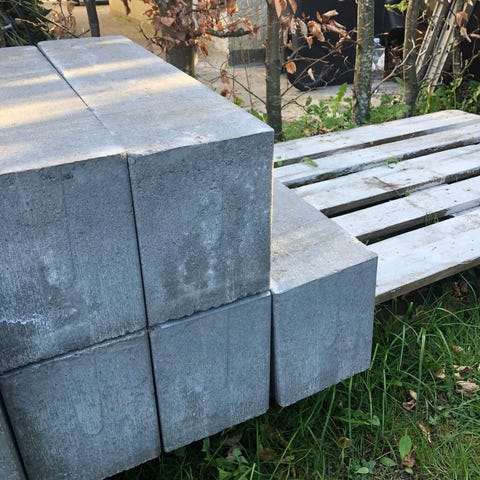 Fire Albertslundkantsten 15x30x100 cm med grå vandret overside gives væk. Betingelsen er at du skal fjerne alle fire sten fra baghaven. De er brutalt tunge - cirka 100 kg per styk - så to mand er påkrævet. Jeg har en sækkevogn, du kan låne.