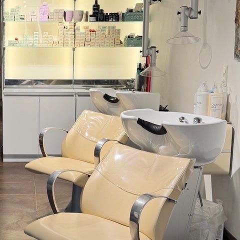 To frisørstol / barberstol med fodstøtte og guld detaljer