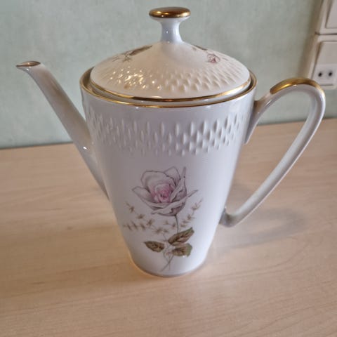 Gammel porcelæns kaffekande med blomstermotiv