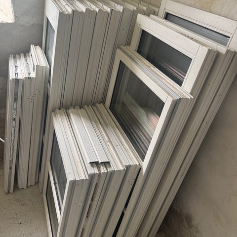 Flere vinduer og karme sælges samlet hvid indvendig pg sort udevendig, se mål og antal på billederne og labels på siderne.