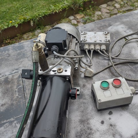Type 1, 400 kg, professionel lift med hydraulisk håndpumpe, 100% OK, vil pynte med ny maling på liftpladen, brugt meget lidt af 2 private ejere, se evt. info: Spangkilde Teknik Aps.