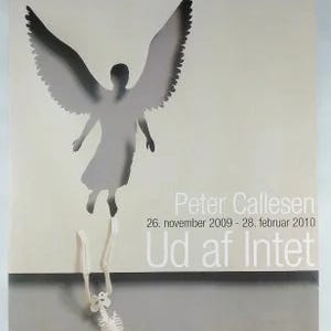 En af tre oversize Jyllands Posten reklameplakater som vi har til salg. De øvrige er af Per Kirkeby og Peter Carlsen. Disse har været opbevaret rullet sammen siden omkring 1995 og er i god stand.