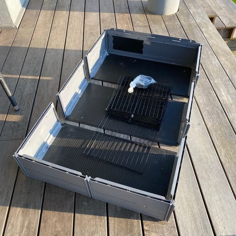 Skab et rummeligt og fleksibelt hjem til dit lille kæledyr med dette modulære bur til marsvin. Buret måler 145 × 75 cm og giver masser af gulvplads til bevægelse og leg. Den åbne konstruktion med gitterpaneler sikrer god ventilation og overblik, mens den høje bundkant hjælper med at holde strøelse og foder inde i buret, så området omkring forbliver pænt.