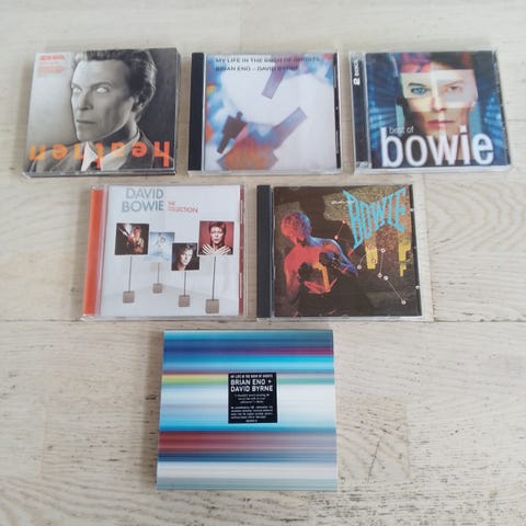 Samling med 6 David Bowie CD’er i plastikcover med originale covers og tryk. Flere af dem er opsamlinger med mange kendte numre, se billeder for titler og tracklister.