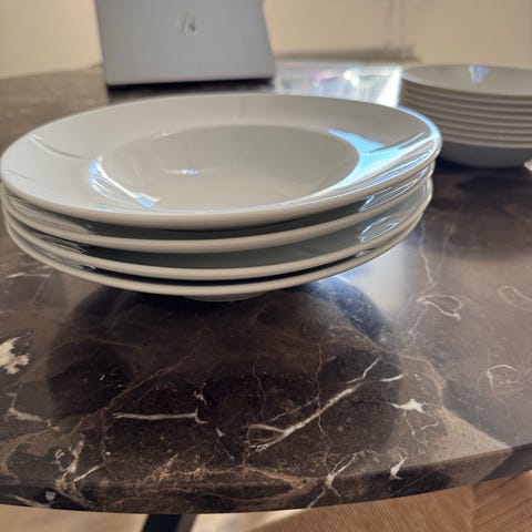 Rosendahl hvide dybe tallerkener i enkelt, rund form. Sælges helst samlet, 8 stk. 19 cm.