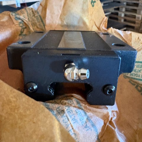 Rollco FKN12 lineær føring med gevindspindel sælges. Solid enhed i metal med to styrestænger og monteringsplade, klar til montering i dit setup.