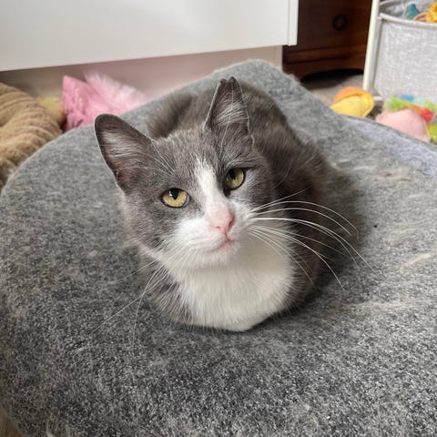 Hej sif er et år, hun søger et hjem, hvor hun kan komme ud, være fri, sif er kærlig, hun er fundet i en mark, fået flaske og er en dejlig kat, sif skal være i et hjem hvor hun kan komme ud, vi bor ved en vej og har ønsket sig, var inde kat, vi har bare måtte inde at sif vil være både inde og ude kat, hun er ikke fald og vil gerne kunne komme ud, håber vi kan finde en god familie der har plads og kærlighed til sif får ude plads og et kærligt familie, det er det vigtige for os og for sig, håber vi høre fra den helt rigtige familie. Katte tårn. Og kattebakke følger med