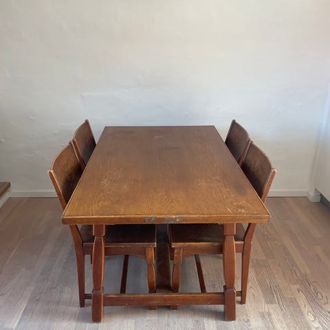 Den skal samles, solid træ bord ikke brugt meget, ikke ryger hjem. Jeg kan ikke huske hvad mærket hedder.