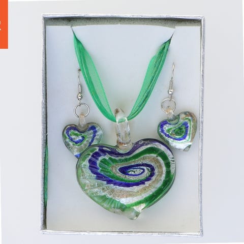 Italiensk glaskunst på grøn baggrund med kæde, aldrig brugt