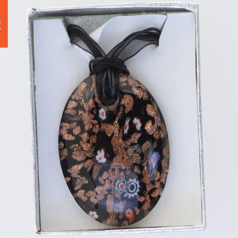 Håndlavet glassmykke, unika halskæde (str. Kasse 9 x 6 cm)