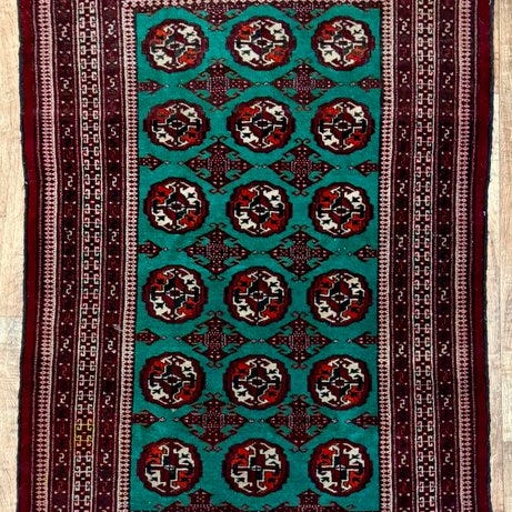 Russisk Jamuod håndvævet uld-til-uld tæppe, 110 × 86 cm, flerfarvet, fra slutningen af det 20. århundrede, i god stand med alders- og brugsspor. Klik på den blå "gå til varen" knap, for at købe eller byde på denne vare. Den samlede pris vil blive vist inden du afgiver dit bud.