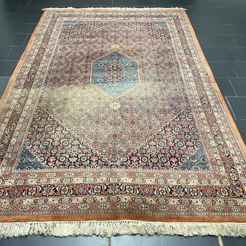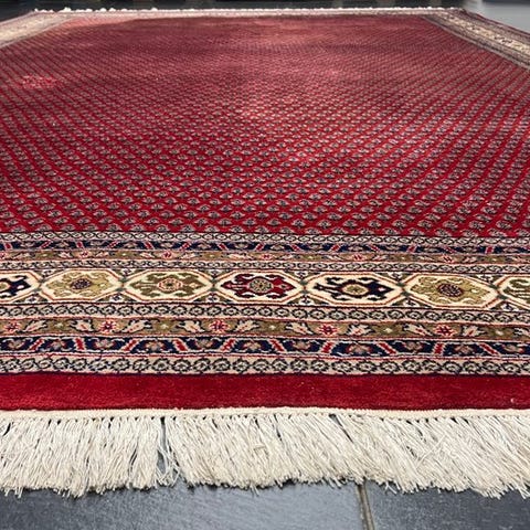 Oprindelsesland Indien; model Sarough Mir Orient tæppe, mål 306 × 206 cm, uld på bomuld, vægt ca. 25 kg, i god stand. Klik på den blå "gå til varen" knap, for at købe eller byde på denne vare. Den samlede pris vil blive vist inden du afgiver dit bud.