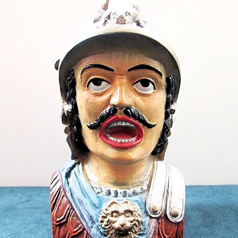 Italiensk fremstillet bust af Julius Cæsar i marmoreal rekombineret marmo med bronzepatina, håndfinish, underskrevet, brun, 24 cm bred, 34 cm høj, 14 cm dyb, i god stand. Klik på den blå "gå til varen" knap, for at købe eller byde på denne vare. Den samlede pris vil blive vist inden du afgiver dit bud.