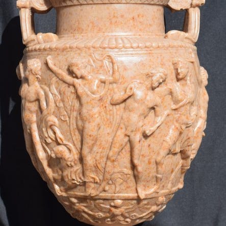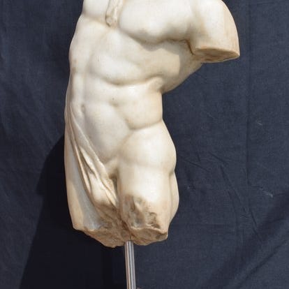 Smukt bustkopi i Carrara-marmor, genopbygget med en bronzefarvet patina og fuldstændigt håndforarbejdet, som forestiller den store romerske politiske general Julius Cæsar (Rom, 13. juli 101 f.Kr. eller 12. juli 100 f.Kr. – Rom, 15. marts 44 f.Kr.) Italiensk oprindelse i fremragende stand. Musealt udseende.