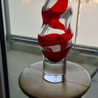 Krystal Serica tofarvet flaske designet af Floris Meydam for Glasfabriek Leerdam i 1953, i fremragende stand, 46 cm høj med en bund på 10 x 10 cm, orange og hvid. Klik på den blå "gå til varen" knap, for at købe eller byde på denne vare. Den samlede pris vil blive vist inden du afgiver dit bud.