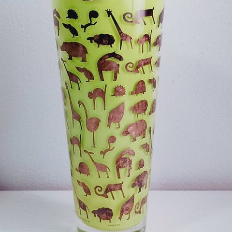 Glasgenstand fra Frankrig tegnet af Robert Pierini (født 1950), dateret 1970–1980, mål 20 cm bred, 20 cm dyb og 26,5 cm høj, i fremragende stand og undersiden signeret. Klik på den blå "gå til varen" knap, for at købe eller byde på denne vare. Den samlede pris vil blive vist inden du afgiver dit bud.
